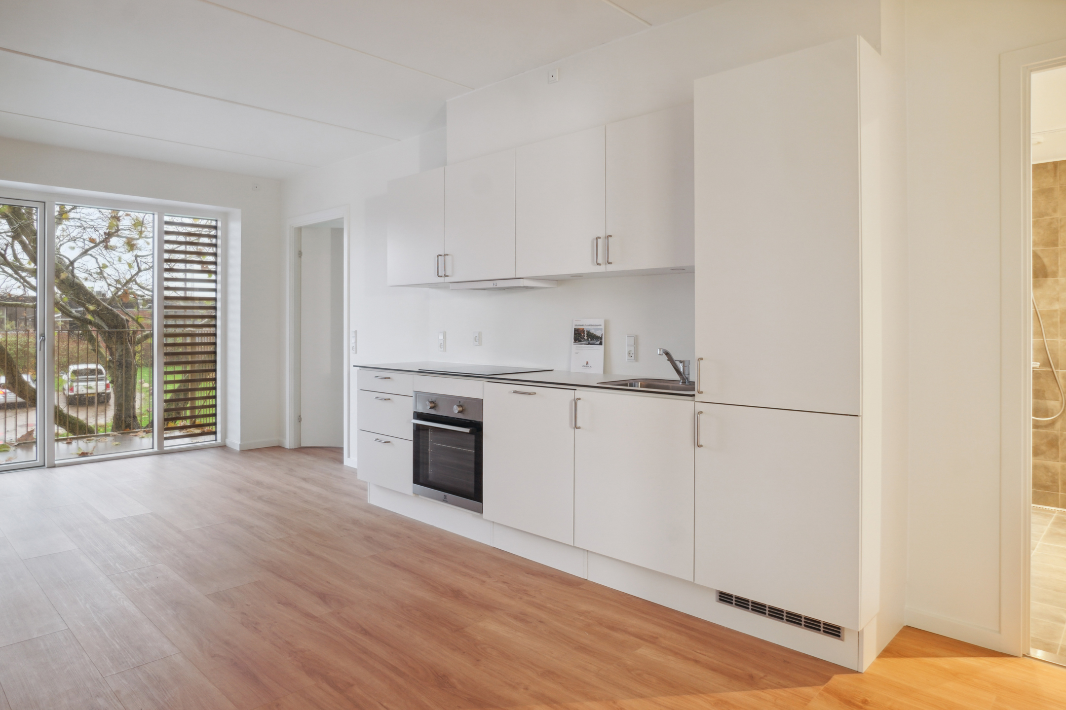 Lejlighederne har store vinduer, der giver et godt lysindfald. Derudover er der en fin altan eller en terrasse til alle lejligheder. Materialerne til lejlighederne er nøje udvalgte, så lejligheden har et moderne udtryk. Stuen ligger i forlængelse af køkkenet, hvilket skaber et åbent miljø.
