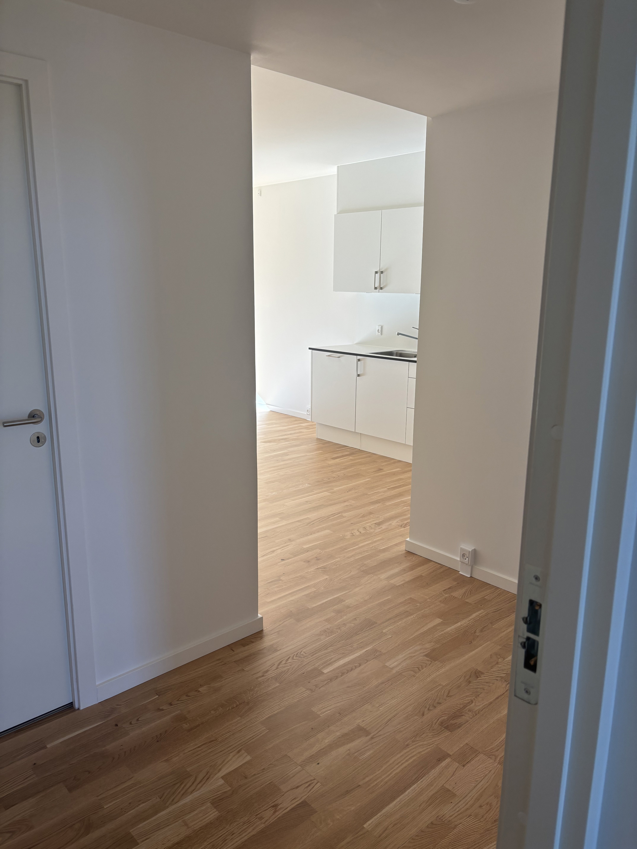 Soveværelset har en rigtig fin størrelse, hvor du har plads til en dobbeltseng. Der er et lækkert badeværelse, hvor vi har gjort klar til, at der kan installeres vaskemaskine og tørretumbler.