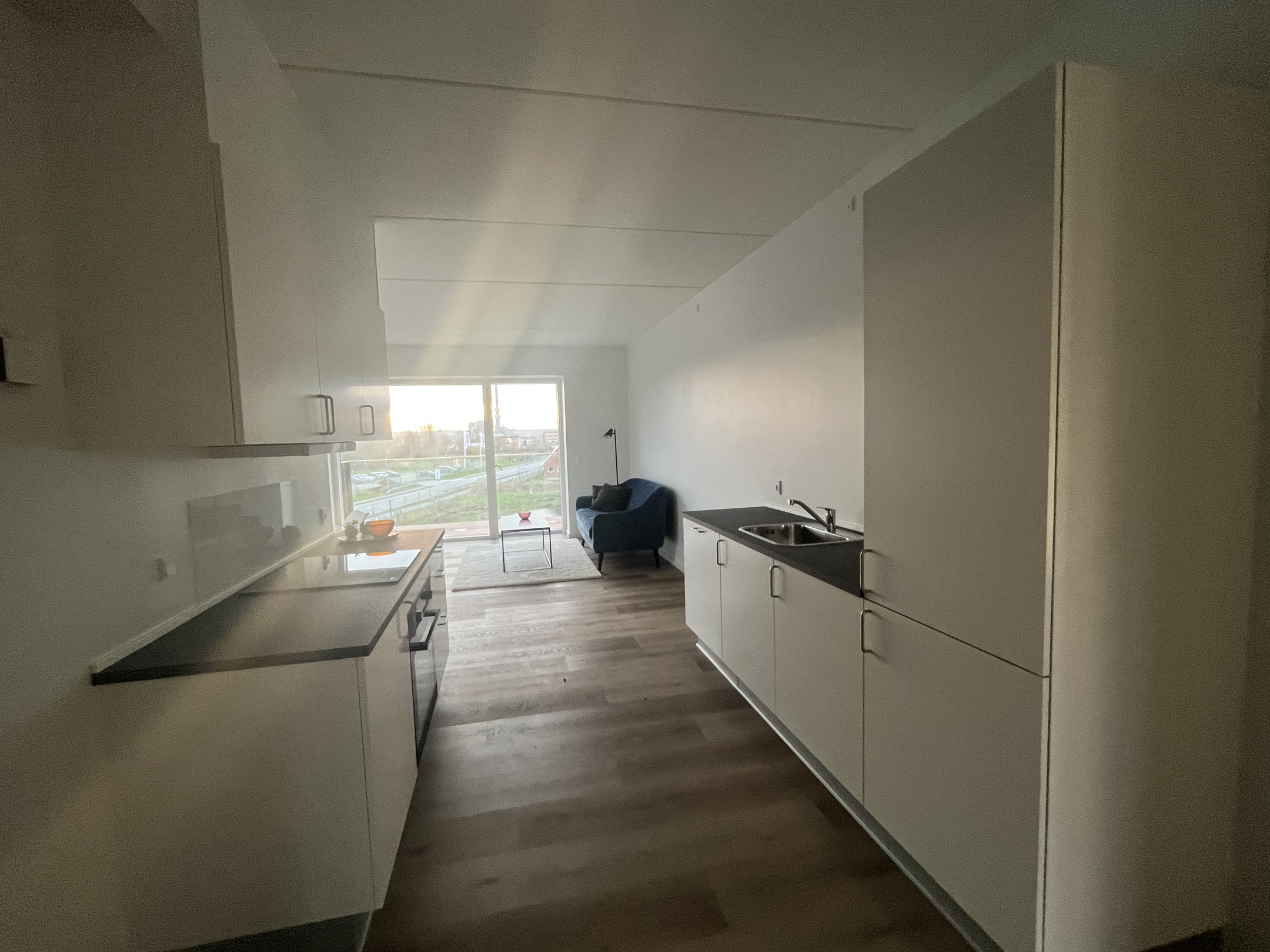 Lejligheden er beliggende i det spændende, nye boligområde Sporbyen. Her finder du fx flotte nye boligejendomme, et kafferisteri og en togvogn, der er ved at blive omdannet til en restaurant. Der sker mange ting i den nye bydel, så det er et dejligt og sted at bo. 🤩